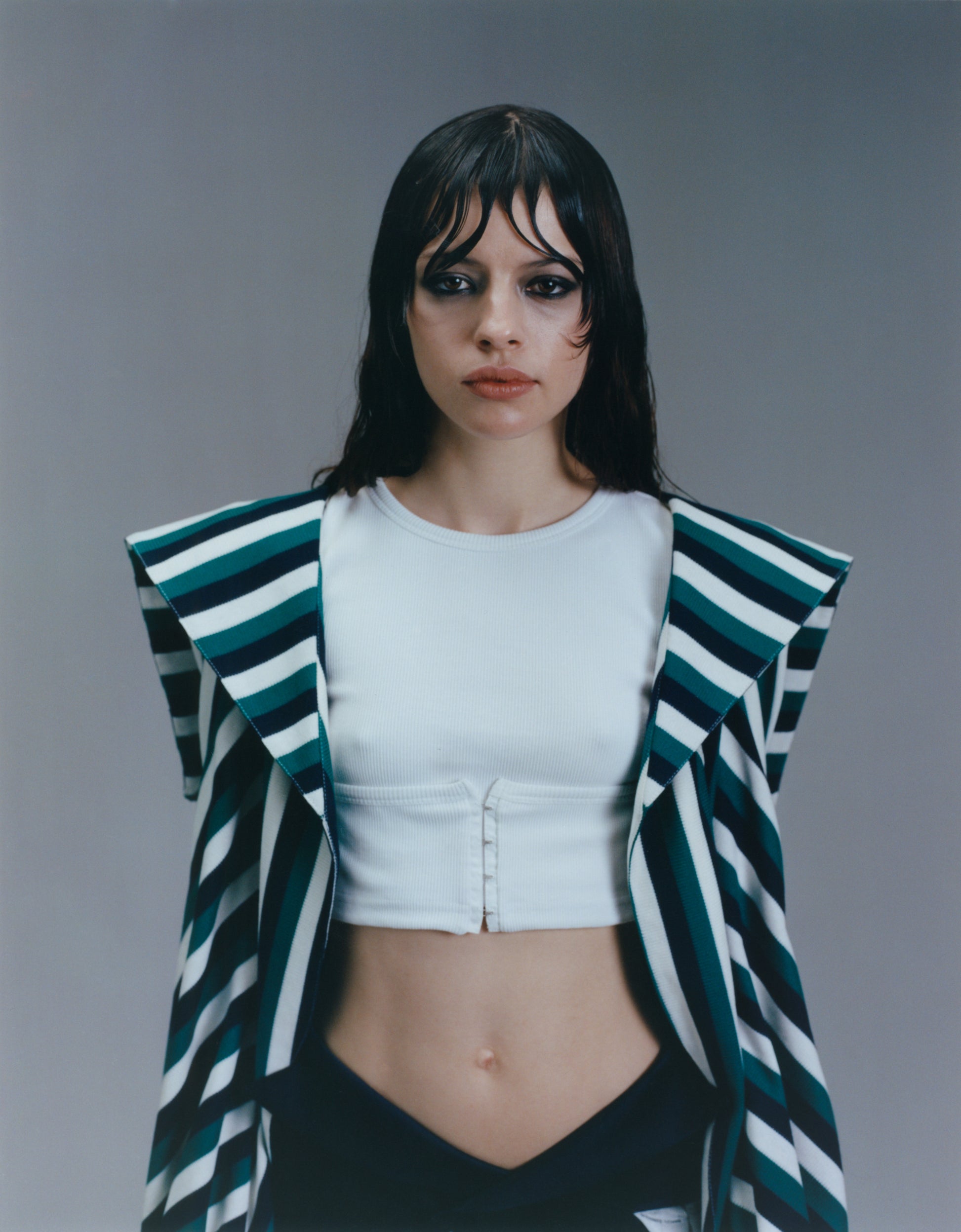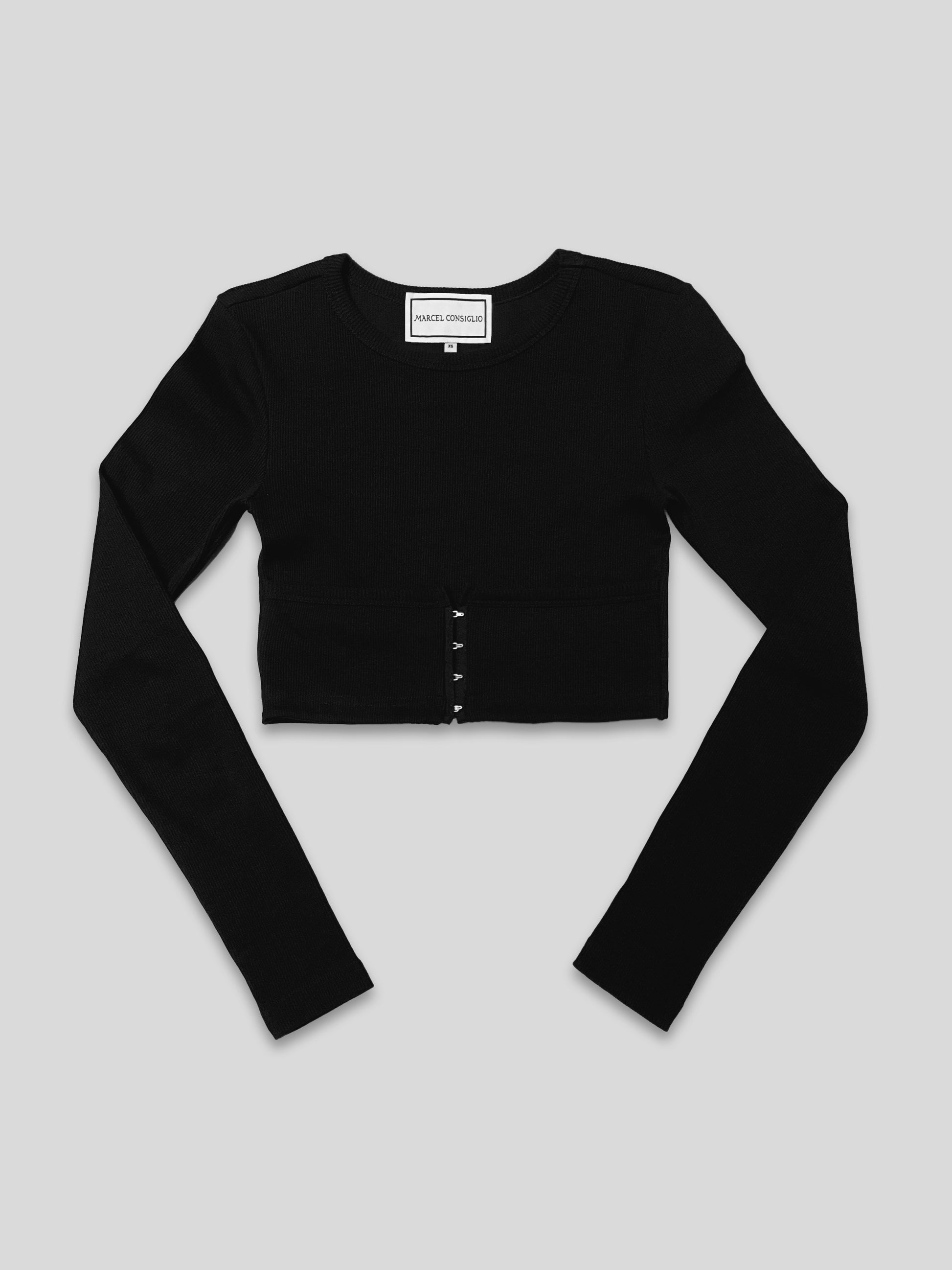 Our Corseted Crop top, meticulously crafted from a premium 1x1 rib knit blend of 98% Cotton and 2% Elastane. Designed with two side flaps that elegantly converge at the center front, which resembles a corset, secured by a discreet hook and eye closure.