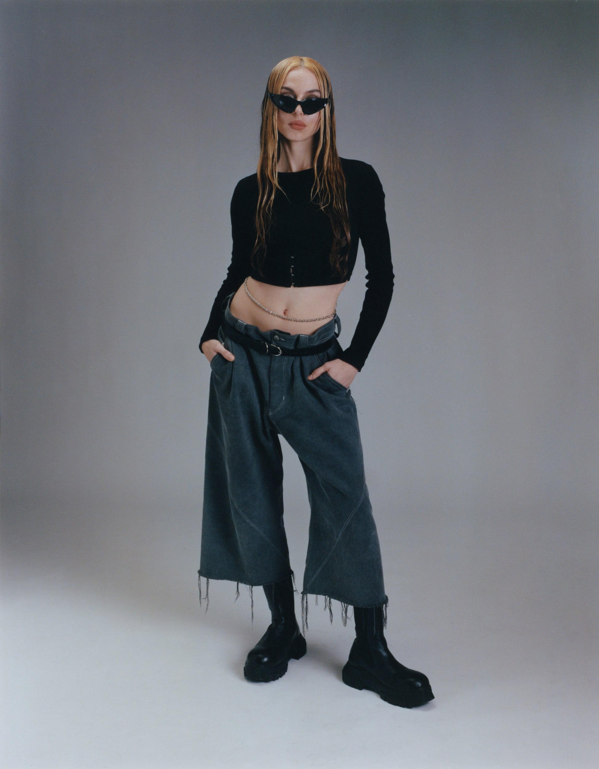 Model wearing the black crop top is 5'11" wearing size S