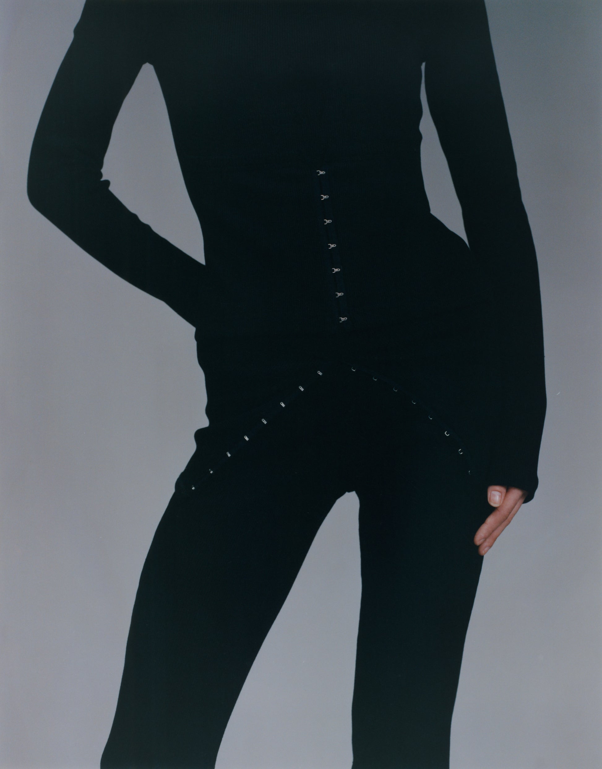 Our Corseted Legging Pant, a captivating fusion of style and comfort. Crafted from a premium 1x1 rib knit blend of 98% Cotton and 2% Elastane. Designed to fold at the waist to created the illusion of a skirt over a pant. At the center front, a discreet hook and eye closure create a corset-inspired detail. This piece effortlessly transforms from legging to jumpsuit with a simple adjustment of the bodice, offering you multiple styling options.