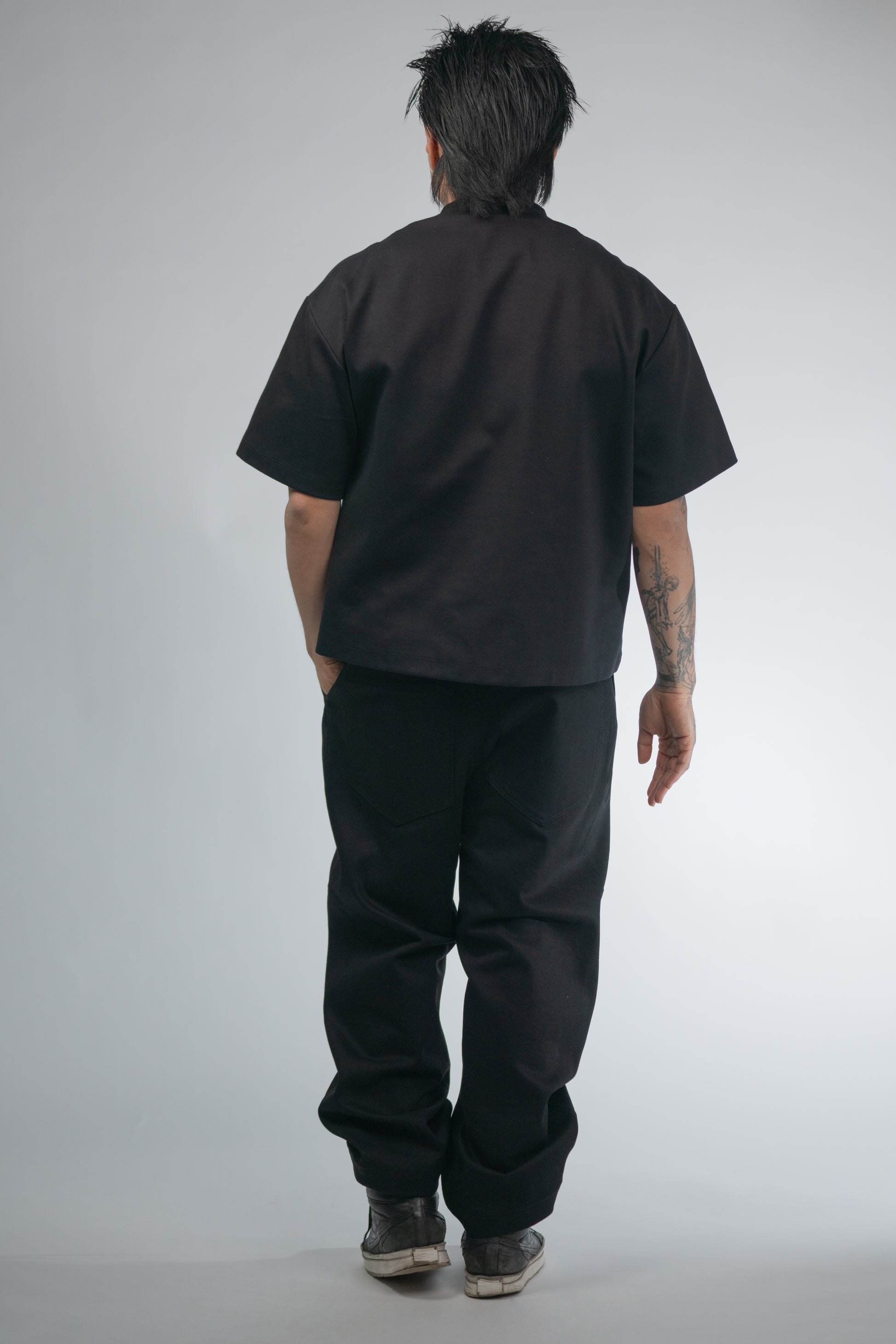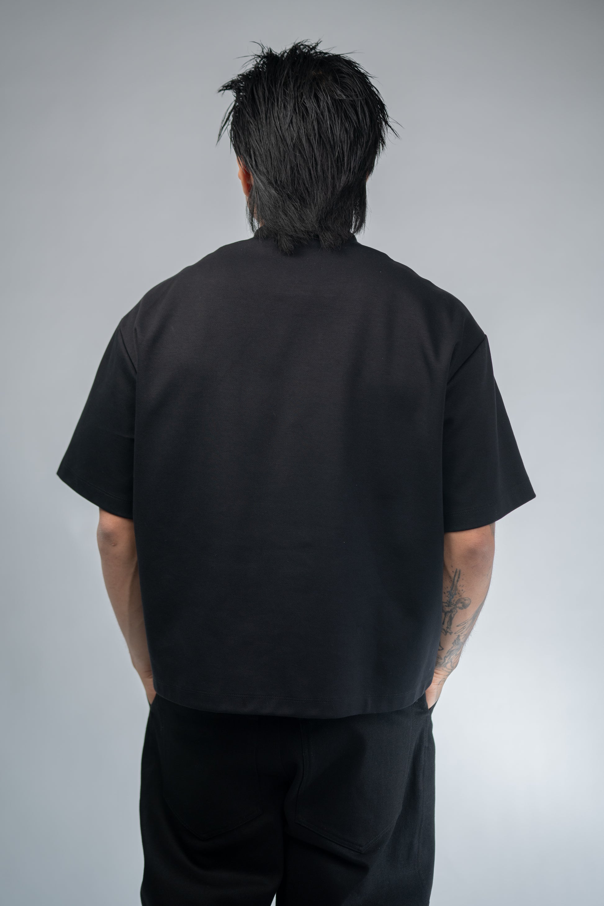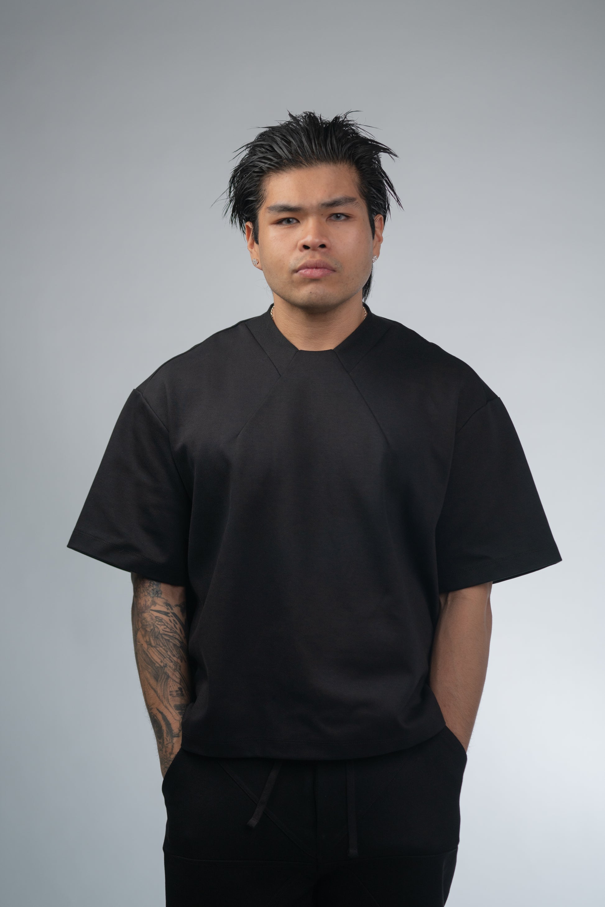 The Darted T shirt features a boxy fit and two darts at the neckline to create an angular collar detail.